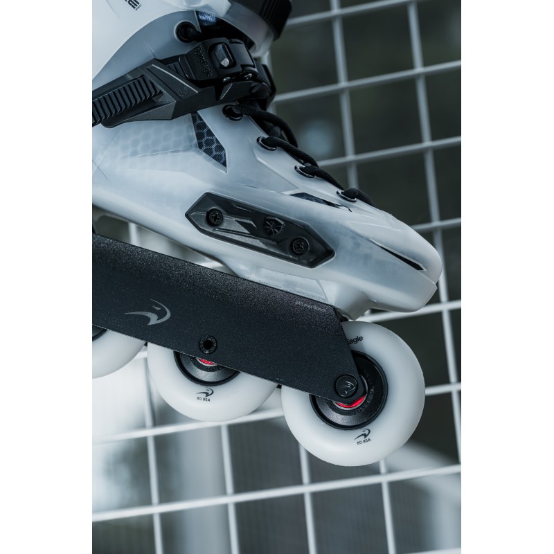 Конструкция дополнена экструдированной алюминиевой рамой CORE с осями-эксцентриками и быстрыми и отзывчивыми колесами Flying Eagle. Flying Eagle X5 Shrike Pro — это переосмысление того, какими должны быть городские роликовые коньки.