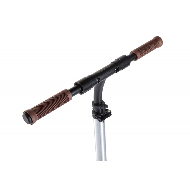 Самый устойчивый и проходимый складной самокат SHULZ удобен даже для долгих поездок. На деке помещаются обе ступни. А руки комфортно расположить благодаря продуманному рулю — с регулировкой по высоте, изогнутым выносом и ребристыми грипсами.