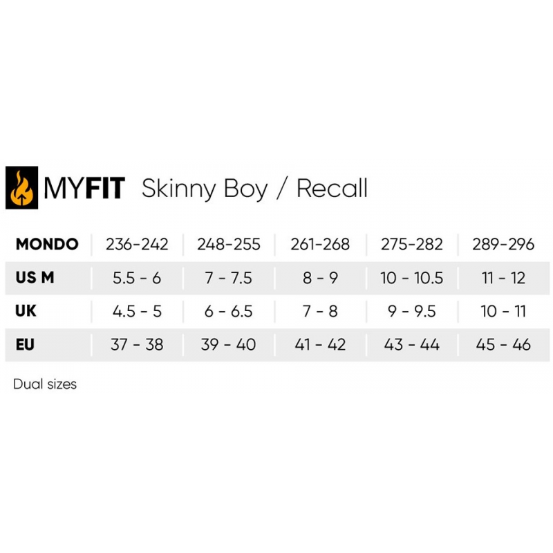 Recall Dual Fit - это валенок, который подходит для более широких жестких ботинков, обычно используемых во фрискейте или в агрессивном катании. Все лайнеры MYFIT поддаются термоформовке, благодаря которой они отлично сидят на ноге. Носок оснащен 4-сторонним растягивающимся материалом SBR, который охватывает два размера. Область лодыжки покрыта слоем полиуретановой кожи. Силиконовые принты на пятке и подошве улучшают сцепление внутри ботинка, повышая передачу энергии. Шнуровка добавляет дополнительную фиксацию.