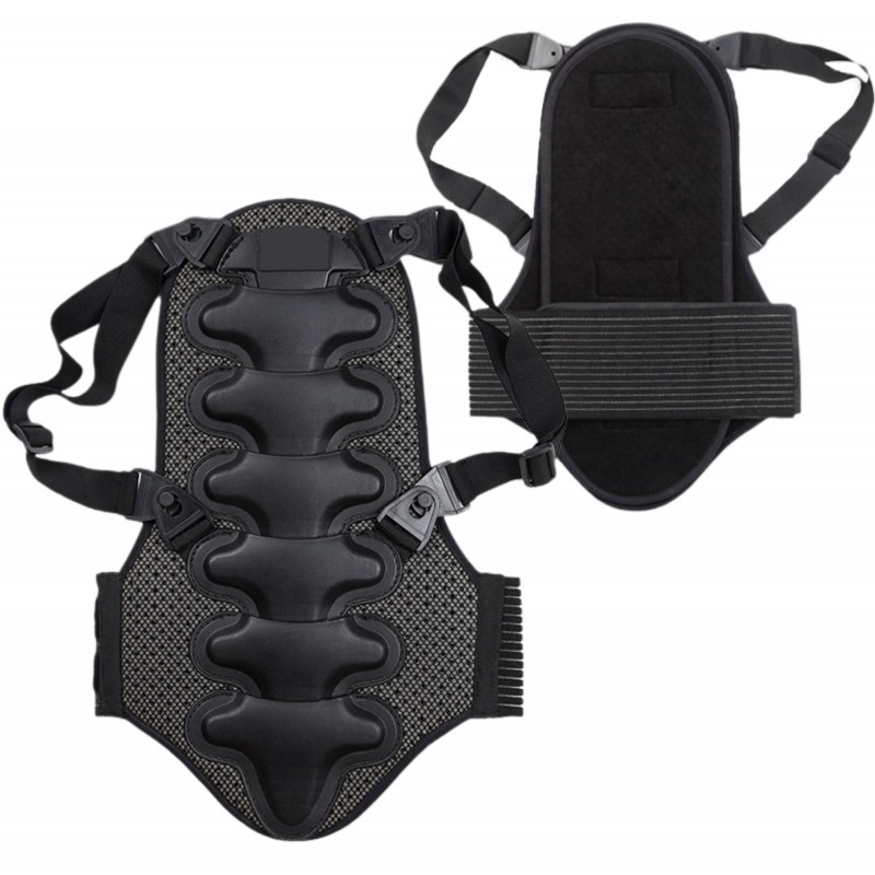 EUC - надежная защита спины для сноуборда, лыж, роликовых коньков, мотоциклов и велосипедов. Изготовлена из материалов высокого качества: жесткий материал, эргономичный сетчатый материал K080, пена EVA и пластик. Особенности: вентиляционные отверстия, анатомическая конструкция, регулируемые резинки и быстросъемные застежки. Размеры: S (135-160 см), M (160-170 см), L (170-180 см), XL (от 180 см).
